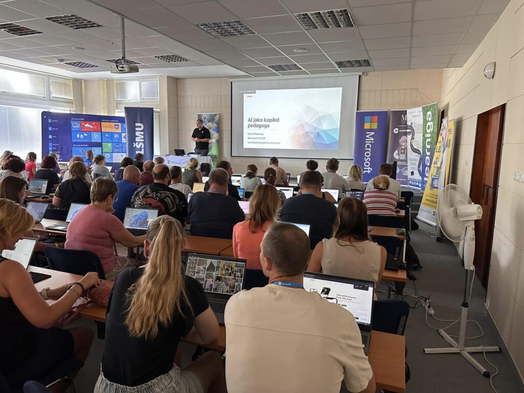 První den začal tak, jak si doba žádá – představil AI jako pomocníka a užitečný nástroj pedagoga, což se později konkretizovalo ve workshopech zaměřených na akceleraci učebních procesů, správu cloudových úložišť, výuku jazyků nebo matematiky, využití AI ve tvořivých předmětech nebo práci s informacemi.